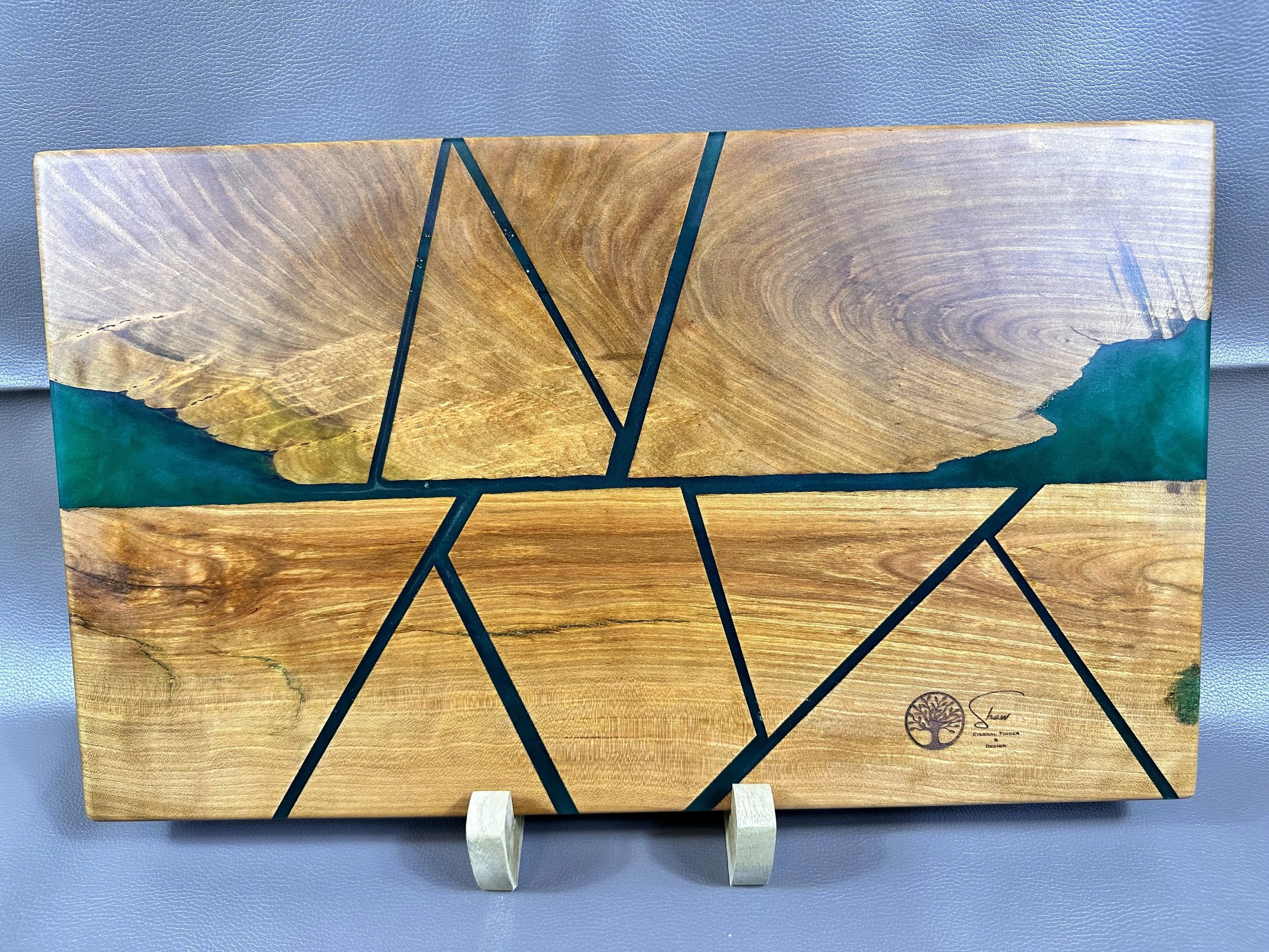 Geometric green epoxy resin serving board for Westmoreland Museum